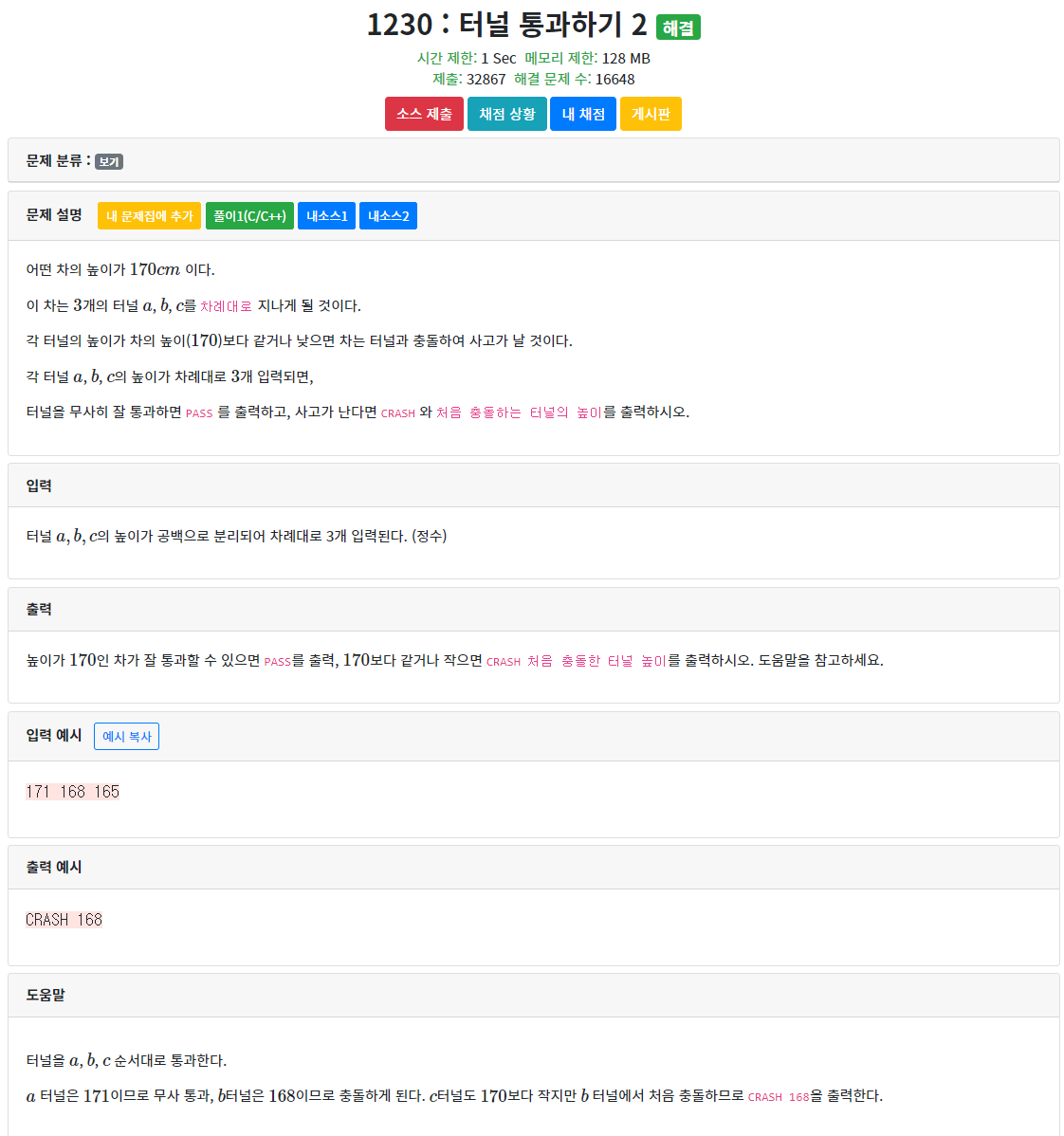 맨 첫 번째로 통과를 못하면 CRASH 출력하고 반복문 빠져나오게 해 줬는데