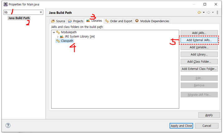 5-1 다운받은 JAR파일 경로가서 선택해주기