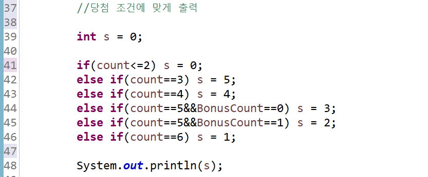 당첨 조건에 맞게 출력하는 부분에서 막혔다.