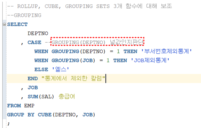 - ROLLUP, CUBE, GROUPING SETS 3개 함수에 대해 보조