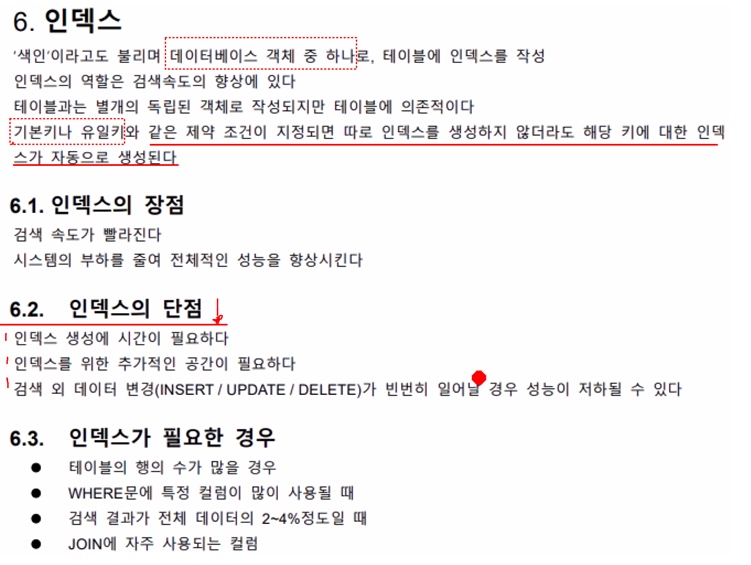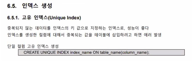 - PRIMARY KEY , UNIQUE는 인덱스 자동 부여