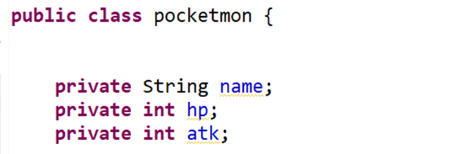 - Pocketmon 객체는 반드시 – 이름/종류/등등을 가지고 태어나야한다.