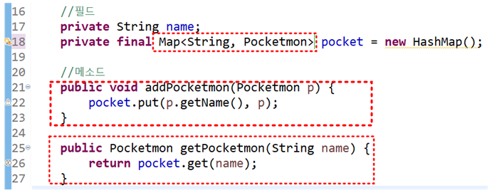 - >>addPocketmon() 과 getPocketmon() 메서드 생성
