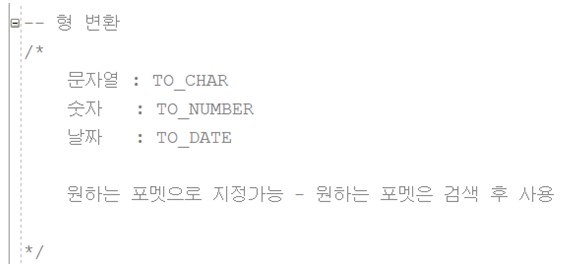 | 형변환 | NULL처리 함수 | 그룹 함수 | 집계 함수 |
