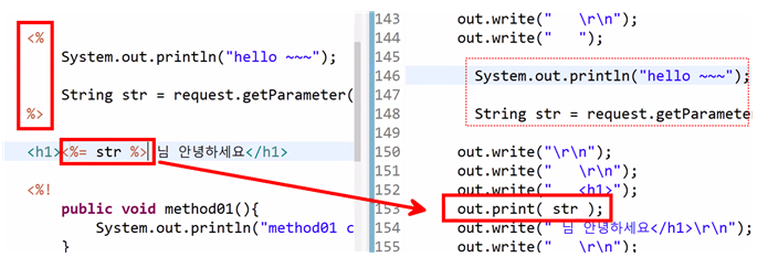 - 내가 특별하게 표시해준 것들은 println()으로 처리되지 않고 java코드로 처리해주는 것이