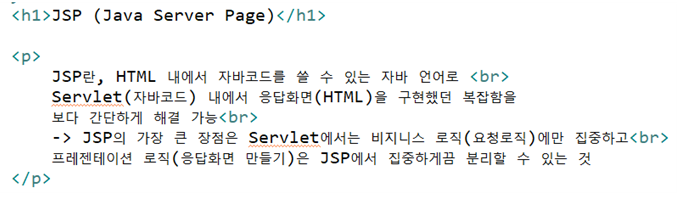 이 부분만 좀 개선되면 좋을 텐데 해서 나온 것이 JSP!
