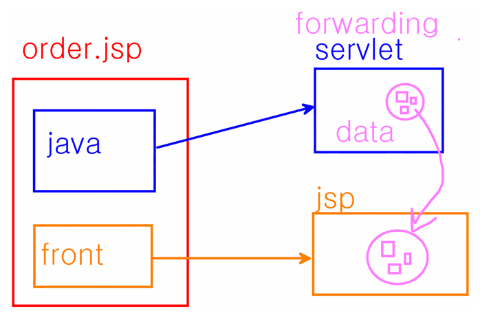 # fornt 쪽 담당하는 jsp가 일을 하려고 봤더니 java 쪽에서 얻어온 데이터가 필요하다.