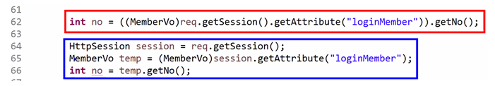 - 어떤 회원의 정보를 변경할 것인지 알려주기 위해 "로그인회원객체"에서 회원번호같이 담아서 전달