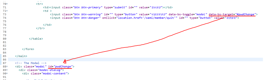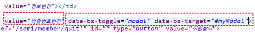 - 이 부분 때문에 모달창이 열리는 듯 - 비밀번호 변경 버튼에도 추가해주자