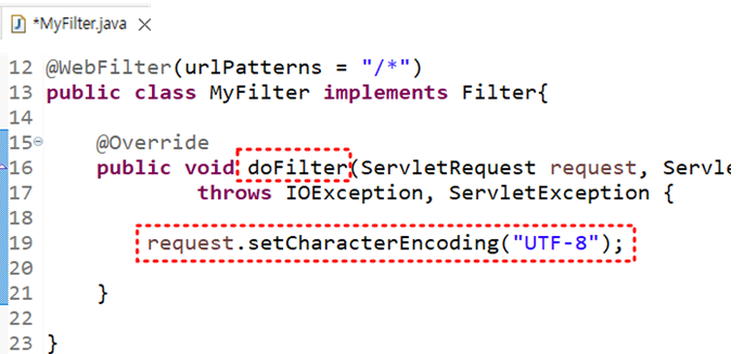 2-3 : Filter 인터페이스의 메서드 doFilter - @오버라이드