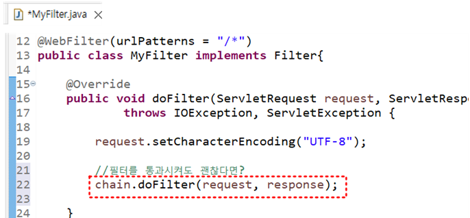 2-4 : 필터 통과시켜주기 - chain.doFilter();