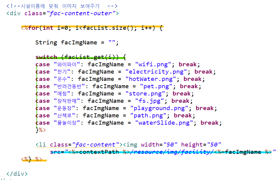 2. 캠핑장이 보유한 부가시설에 맞는 이미지와 텍스트 출력해주기