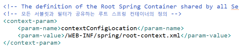 - web.xml에서 다룰 바구니는 root 바구니에 대한 정보를 설정하는 곳이다.