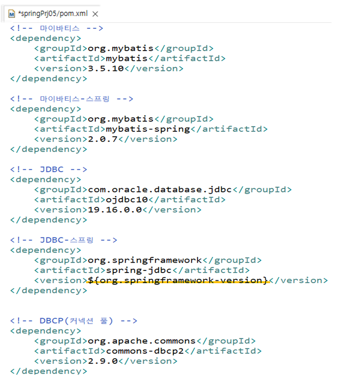 - - BasicDataSource 객체 사용하겠다고 <bean> 등록