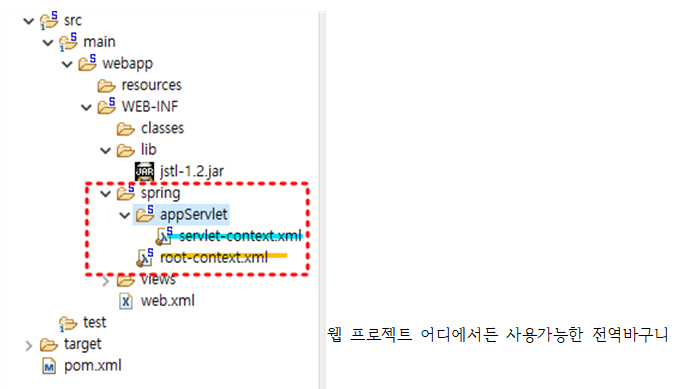 스피링 전역 바구니 | 서블릿 전용 바구니 | 5개의 라이브러리 3개의 <bean> |