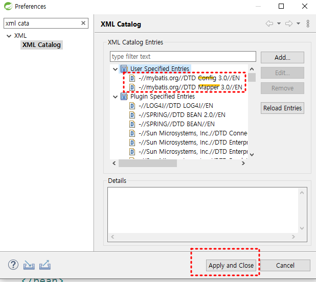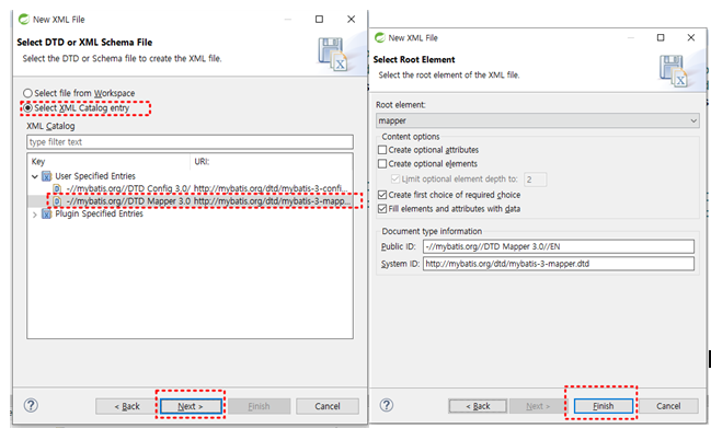 4-3 : Select XML Catalog entry 체크 - 내가 등록한 mapper 카탈로그 맞게 선택하고 next