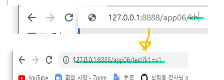 - 쿼리스트링 형식으로 key = value 추가되어서 요청 보내진다.