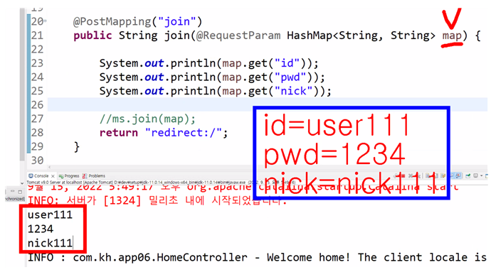 - 메서드 파라미터로 추가 - @RequestParam HashMap<String, String> map