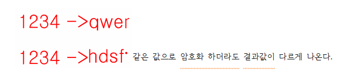 - 요즘은 복호화가 불가능한 단방향 암호화로 사용한다.
