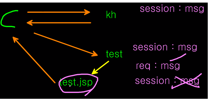 test.jsp에서 세션에 있는 msg를 req객체에 담아놓고 세션에 있는 msg 지워버림