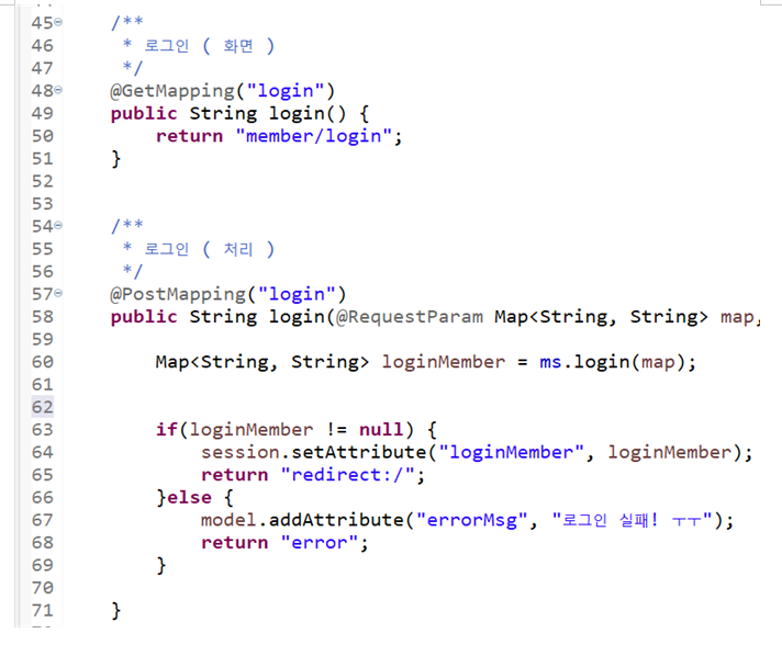 - #조회해 온 회원의 비밀번호 칼럼 값이랑 지금 받아온 비밀번호랑 매칭을 시켜본다.