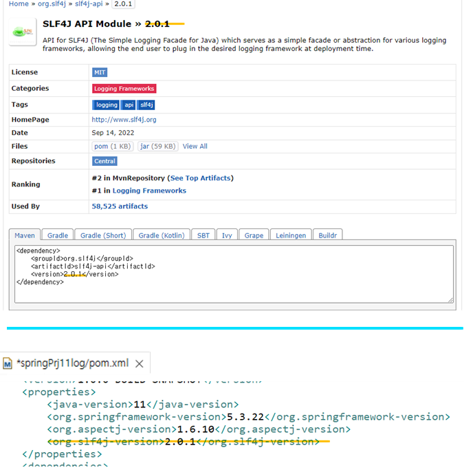 그룹id와 artifactid 같으므로 – 버전 레벨만 수정