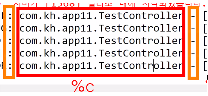 - %d{ yyyy-MM-dd HH:mm:ss } 출력 형식 지정도 가능