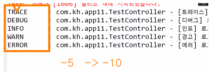 - 스프링에서는 log4j객체를 바로 사용하는 것이 아니라 slf4j를 이용하여 사용한다.