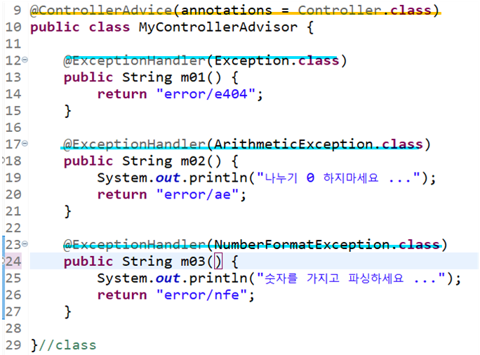 컨트롤러 예외 처리 @ControllerAdvice @ExceptionHandler |