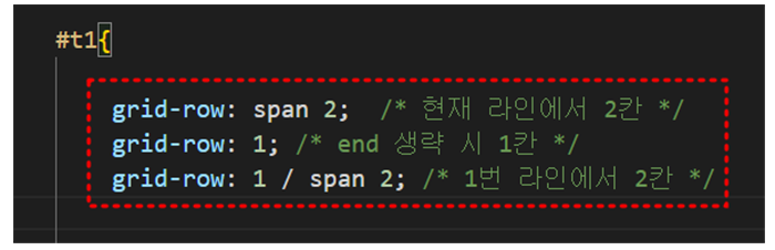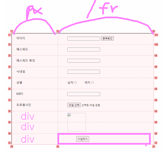 - 원래는 한 칸 짜리인 요소에 grid를 설정해주어서 – 칸을 나눠주고