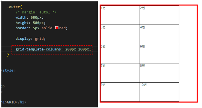 - px로 하면 고정인데 1fr 1fr 해주면 – 2조각을 가지고 나누겠다 해주는 것.
