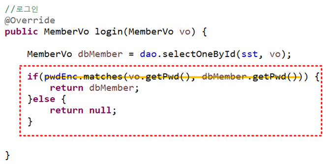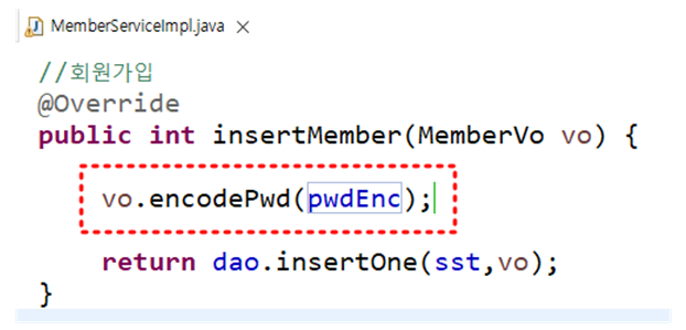 - 암호화한 비밀번호로 MemberVo의 pwd값을 세팅하는 것이므로
