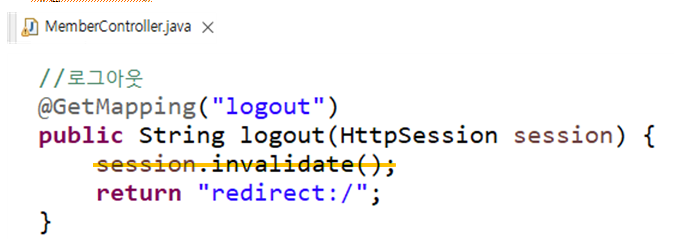 - 로그아웃 처리하기 - 세션에서 만료시키기