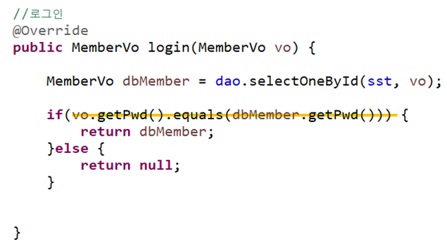 - 가져온 멤버의 pwd와 사용자가 입력한 pwd 맞는지 비교