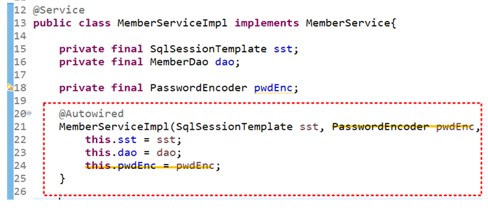 - 암호화하는 PasswordEncoder는 멤버 서비스에서 다 필요하고, 변경 불필요하니까
