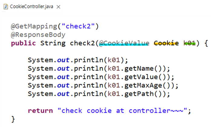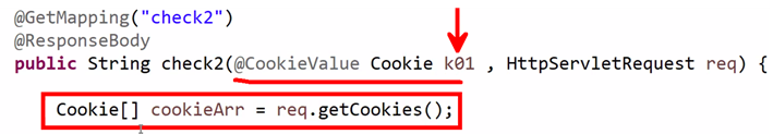- 방법은? - 파라미터에 Cookie 받아오면 된다.