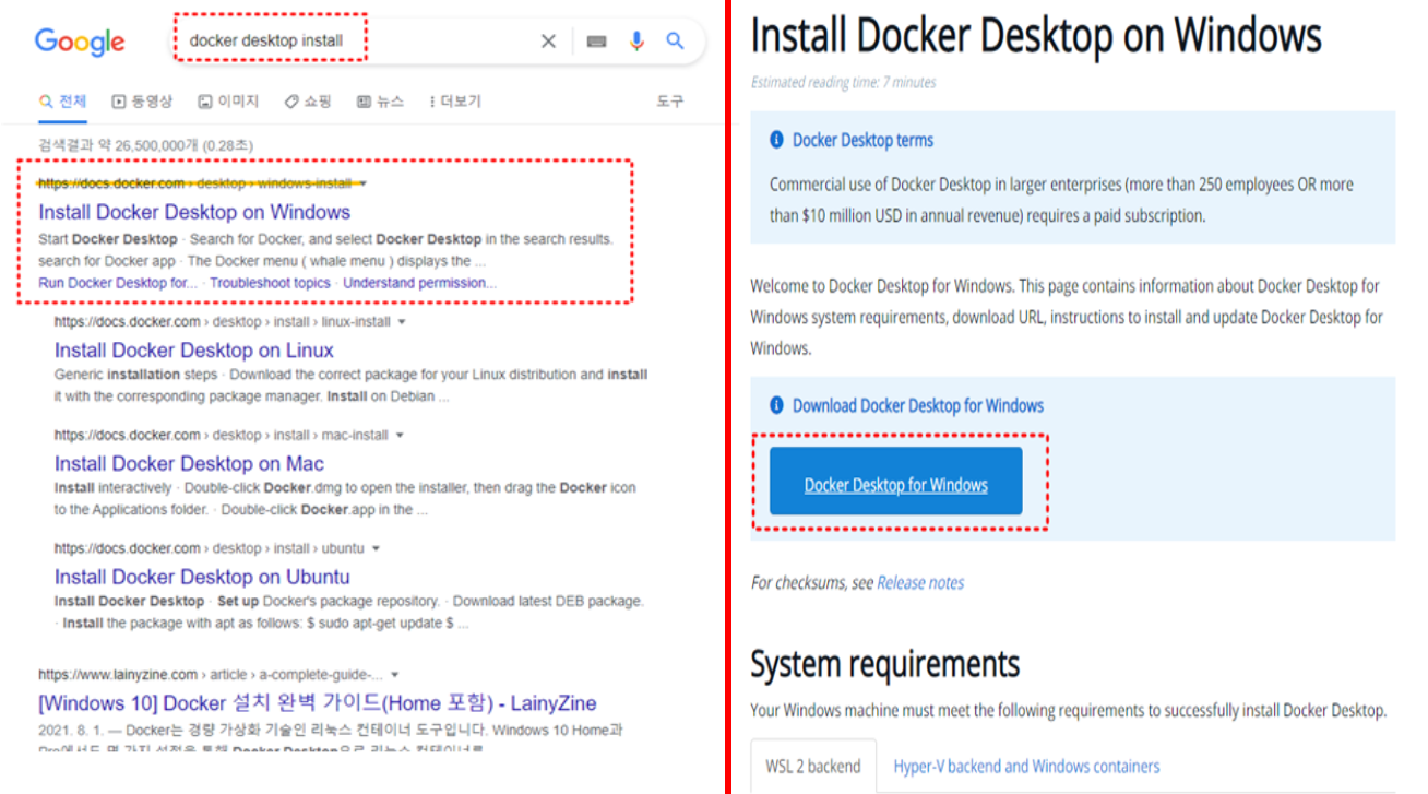 | 1. 도커 설치 | 2. 도커 실행 | 3. WSL 수동 설치 | 4. 재부팅 후 도커실행 | 5. 도커 설치 확인 |