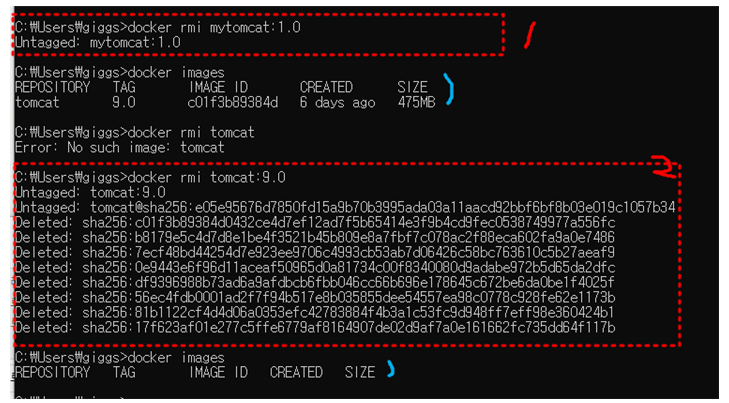 | docker rmi <태그ID> |