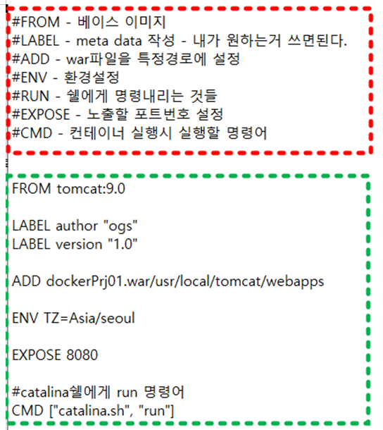 - 1. 도커 파일에 내이름/버전/타임존 등 설정 미리 해줄 수 있어서 컨테이너 실행할 때 –e 해서 설정 작업 필요 없어진다.