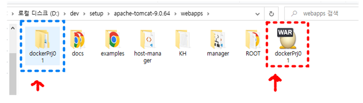 - war파일만 넣어주었는데 톰캣이 자동으로 압축 풀어서 폴더 만들어주었다.