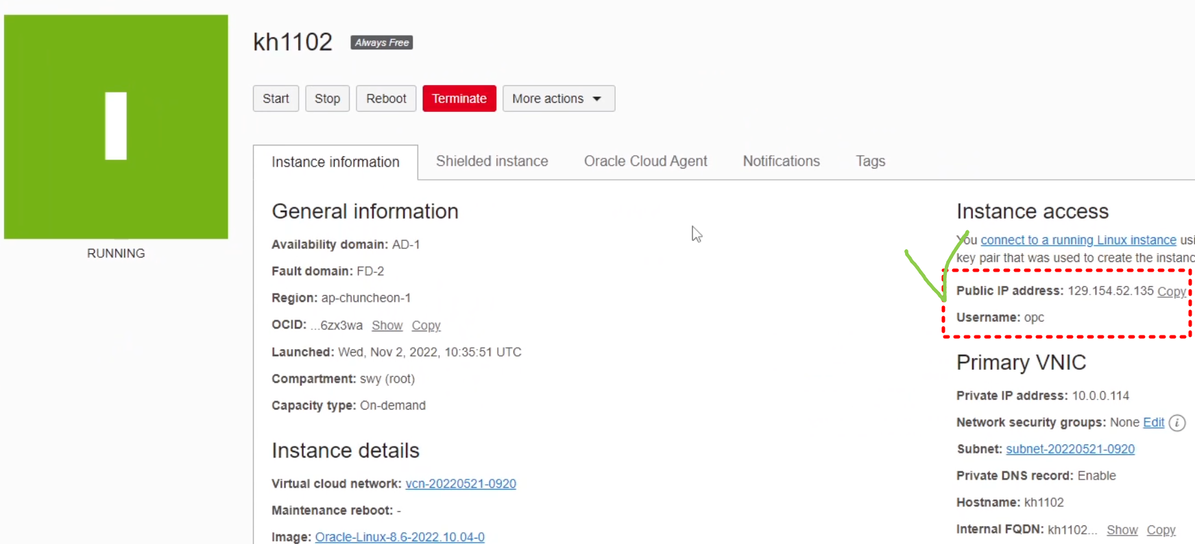 ## 사용자명, 아이피는 Oracle Cloud 사이트에서 확인