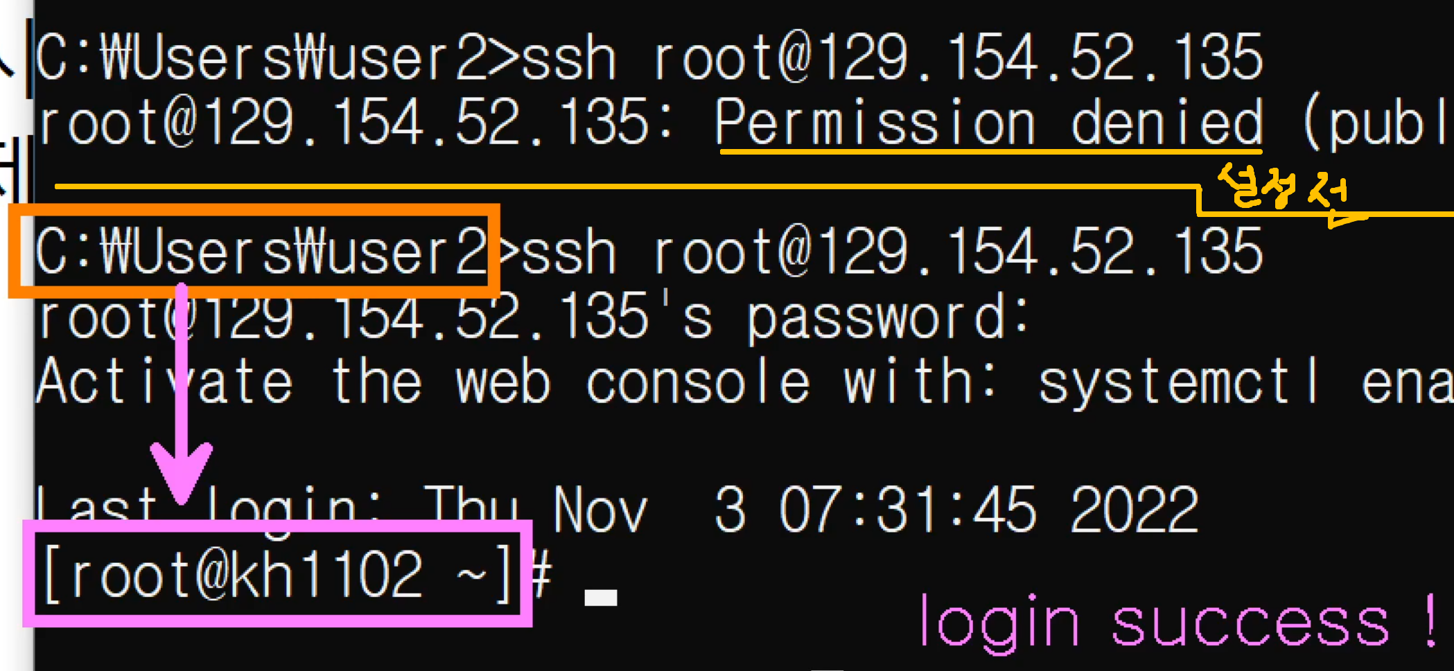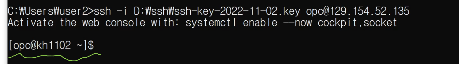 조금 전 key 파일을 이용해 접속한 cmd 열고