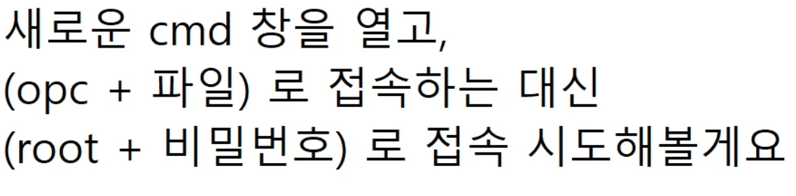 - 재시작 후 윈도우 cmd 창 열어서 [ 비밀번호로 로그인 시도해보기 ]