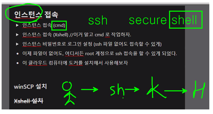 | 1. 인스턴스 접속 준비 | 2. ssh key를 이용해서 클라우드 컴퓨터에 접속하기 |