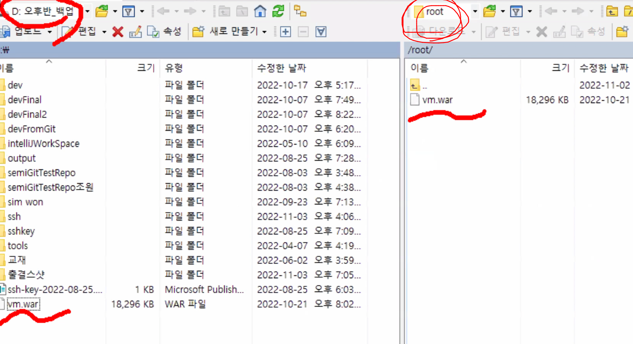 - 내 로컬 컴퓨터의 war파일을 원격지 컴퓨터로 전송!