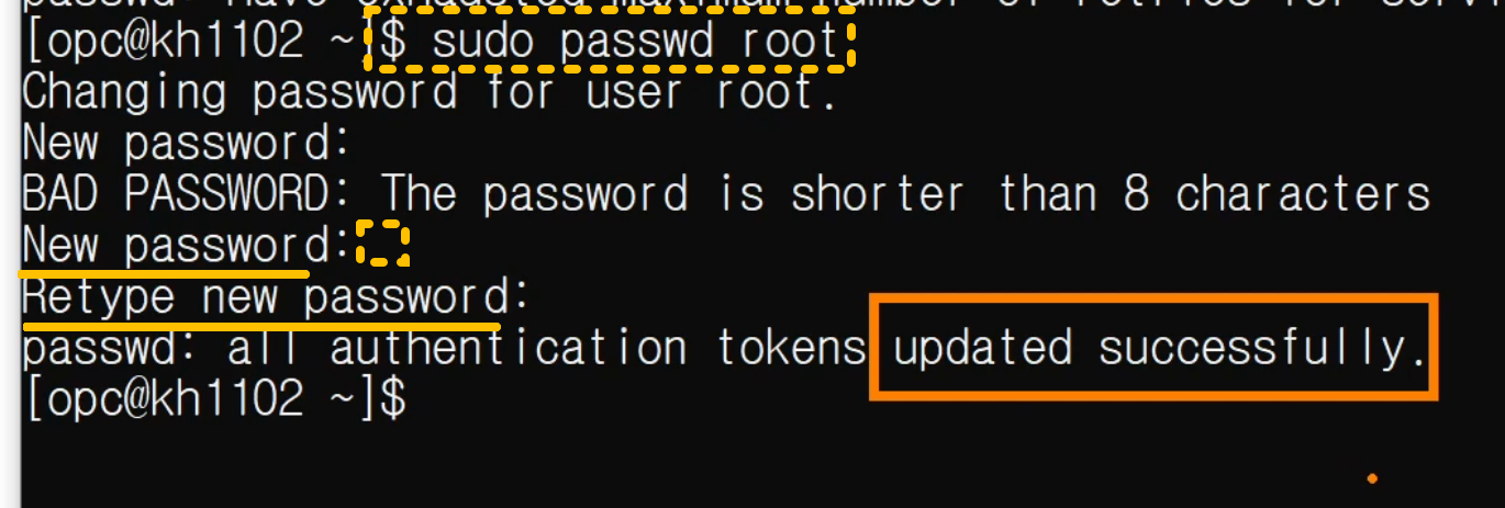 - 해당 명령어를 입력해서, root라는 계정의 비밀번호를 설정