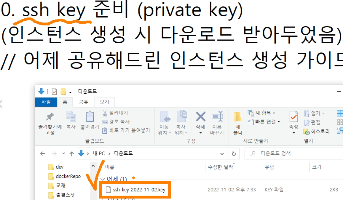 - 내 로컬 컴퓨터에 준비해놓은 ssh 키를 이용해서 클라우드 컴퓨터에 접속하기