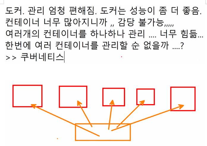 - 지금은 여러 개의 컨테이너를 하나하나 관리하는 방식이라 너무 힘들다.