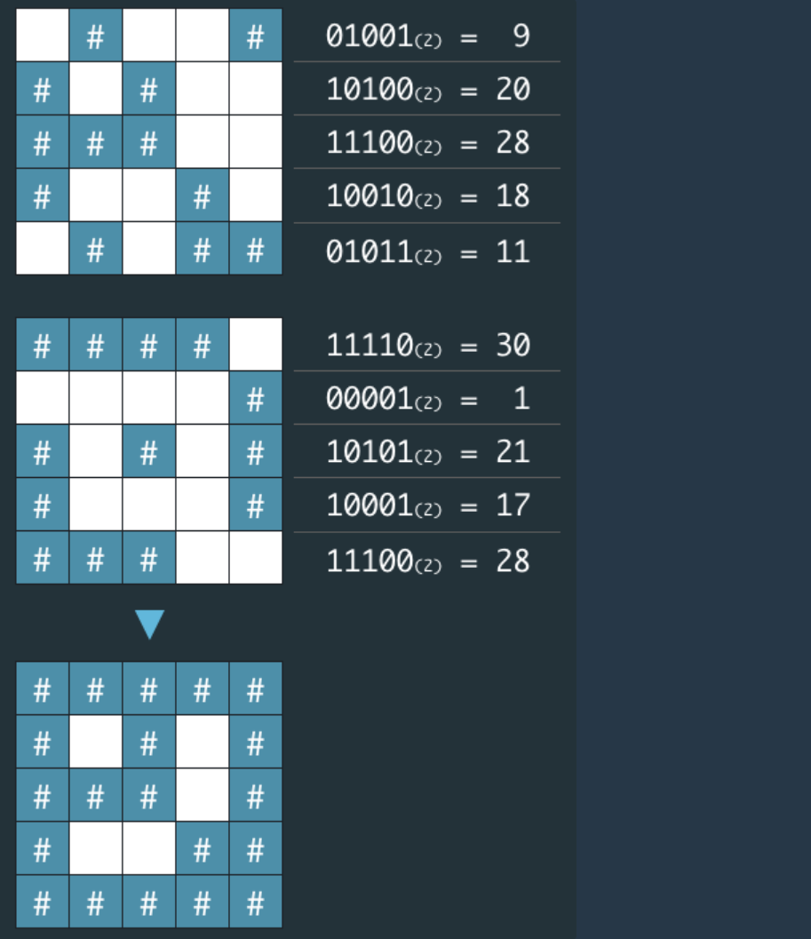 - 막혀있는 기준은 2진수로 표현하였을 시 그 칸의 값이 1이라면 막혀있다고 표시됨